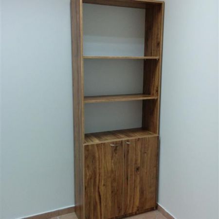 כוננית לאחסון קלסרים במידות 210-80-30הכוננית בעלת 5 תאים כאשר 2 התאים התחתונים סגורים עם דלתות פתיחה