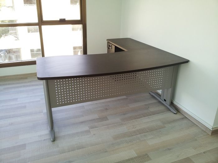 שולחן משרדי עם רגלי ברזל דגם חלון כולל שלוחה עם ארונית דלת ומגירות