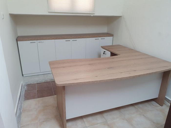 שולחן עבודה דגם גל כולל שלוחה וארון אחורי לאיחסון